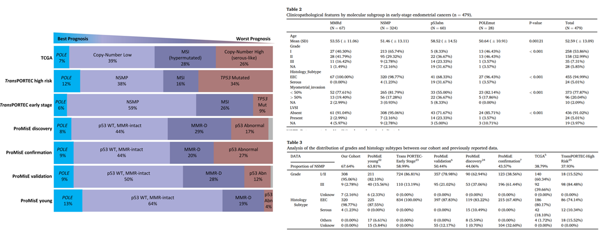 也有聯(lián)合雌激素受體(ER)狀態(tài)進一步細分,如ESGO–ESTRO–ESP子宮內(nèi)膜癌指南將NSMP型根據(jù)分級(grade)和雌激素受體(ER)狀態(tài)進一步細分:G1–2且ER陽性歸為較低風險因素;G3和/或ER陰性歸為高風險因素[4]。